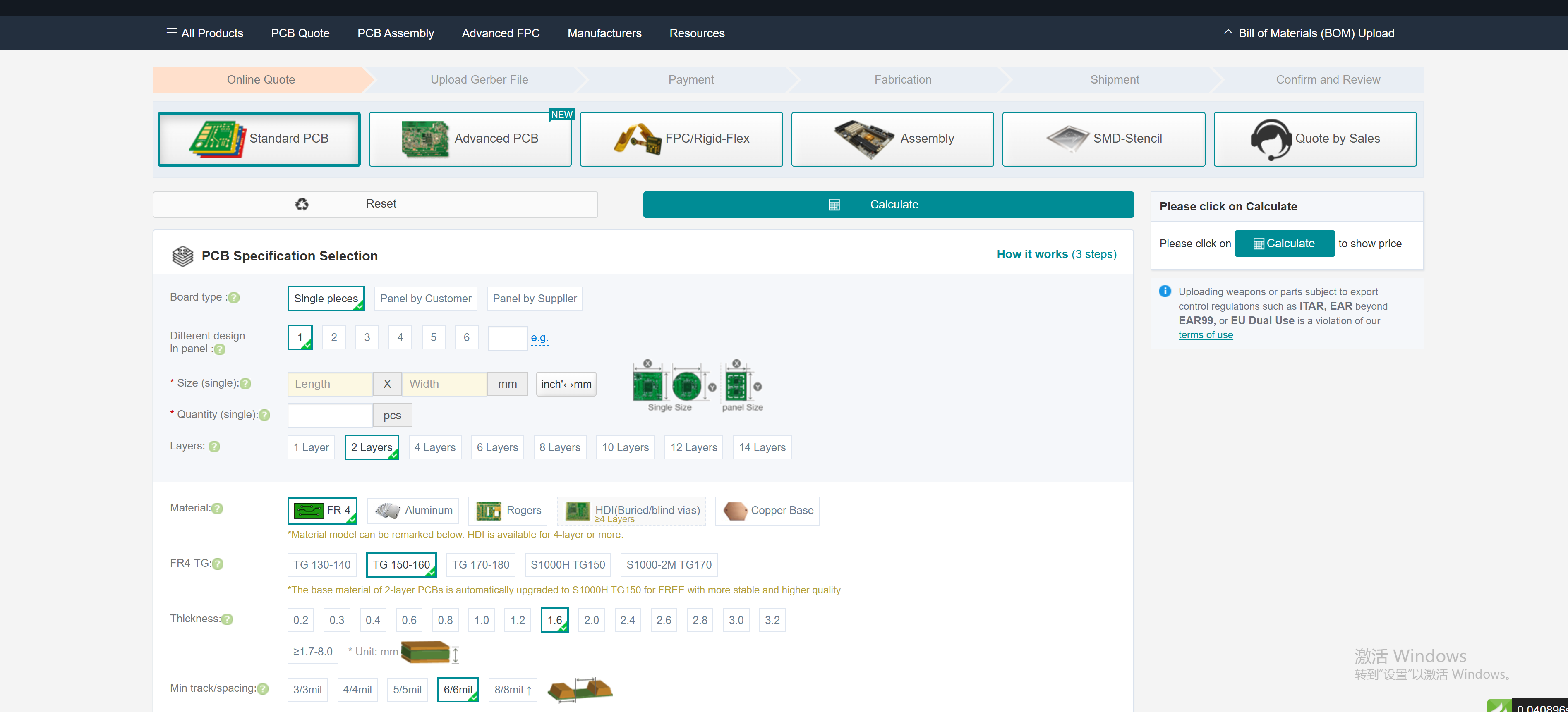 click the "Calculate" button to get the quotation.