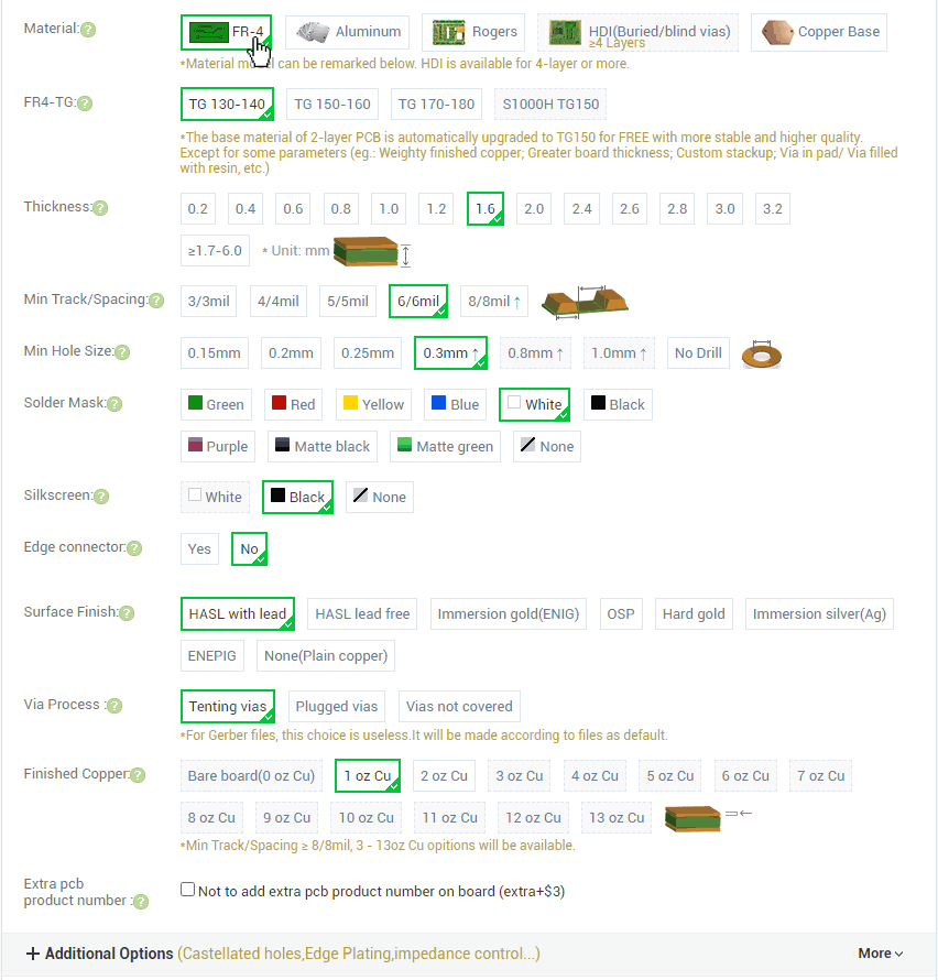 number of pcb layers should also be selected.