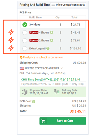 You can choose the lead time of the order, such as expedited service.